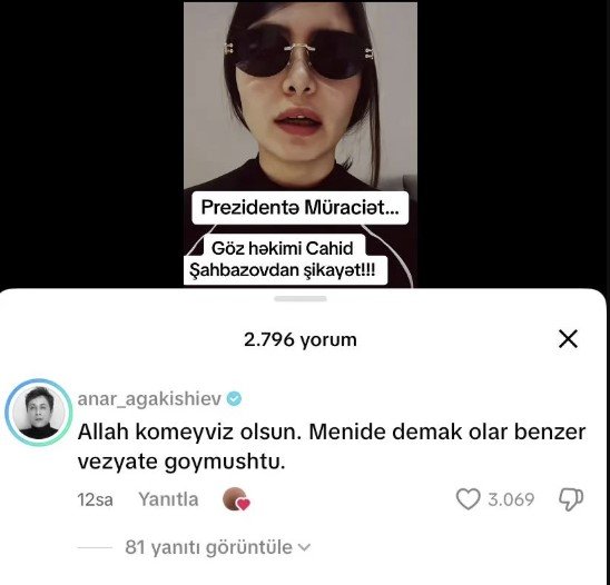 Xatırladaq ki, Humay Əliyeva üzləşdiyi vəziyyətlə bağlı tibbi ekspertizanın təyin edildiyini və gözündə uğursuz əməliyyat olunmasının təsdiqləndiyini əlavə etmişdi. Humay Əliyeva məsələni sosial şəbəkə hesablarında ictimailəşdirəndən sonra onun videomüraciətinə tanınmış stilist Anar Ağakişiyev də rəy bildirərək oxşar problemlə üzləşdiyini qeyd etmişdi.