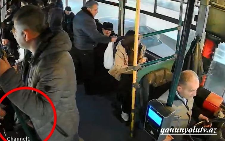 Avtobusda digər sərnişinin pul kisəsini belə ələ keçirdi - Video