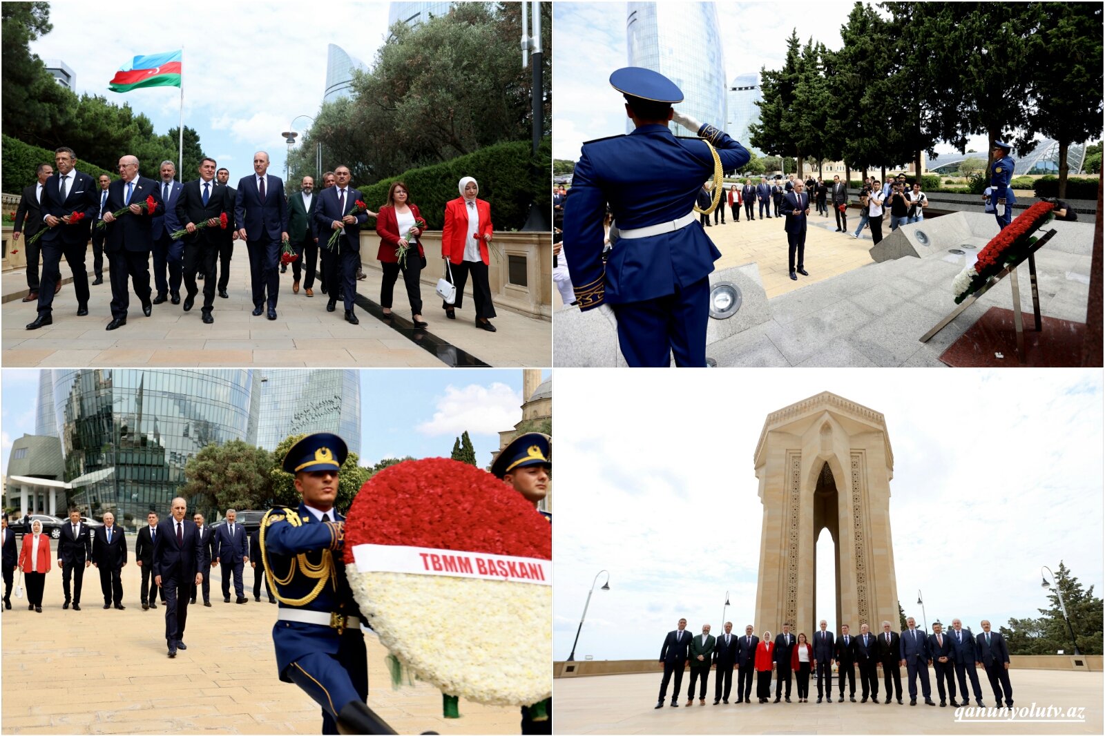 Azərbaycanda rəsmi səfərdə olan Türkiyə Böyük Millət Məclisinin (TBMM) sədri Numan Kurtulmuşun rəhbərlik etdiyi nümayəndə heyəti iyulun 12-də Fəxri xiyabana gələrək xalqımızın ümummilli lideri, müasir müstəqil Azərbaycan dövlətinin memarı və qurucusu Heydər Əliyevin əziz xatirəsini ehtiramla yad edib, məzarı önünə əklil qoyub.“Qanunyolutv.az” xəbər verir ki, ulu öndərin ömür-gün yoldaşı, görkəmli oftalmoloq-alim akademik Zərifə xanım Əliyevanın da xatirəsi ehtiramla anılıb, məzarı üzərinə tər güllər düzülüb.