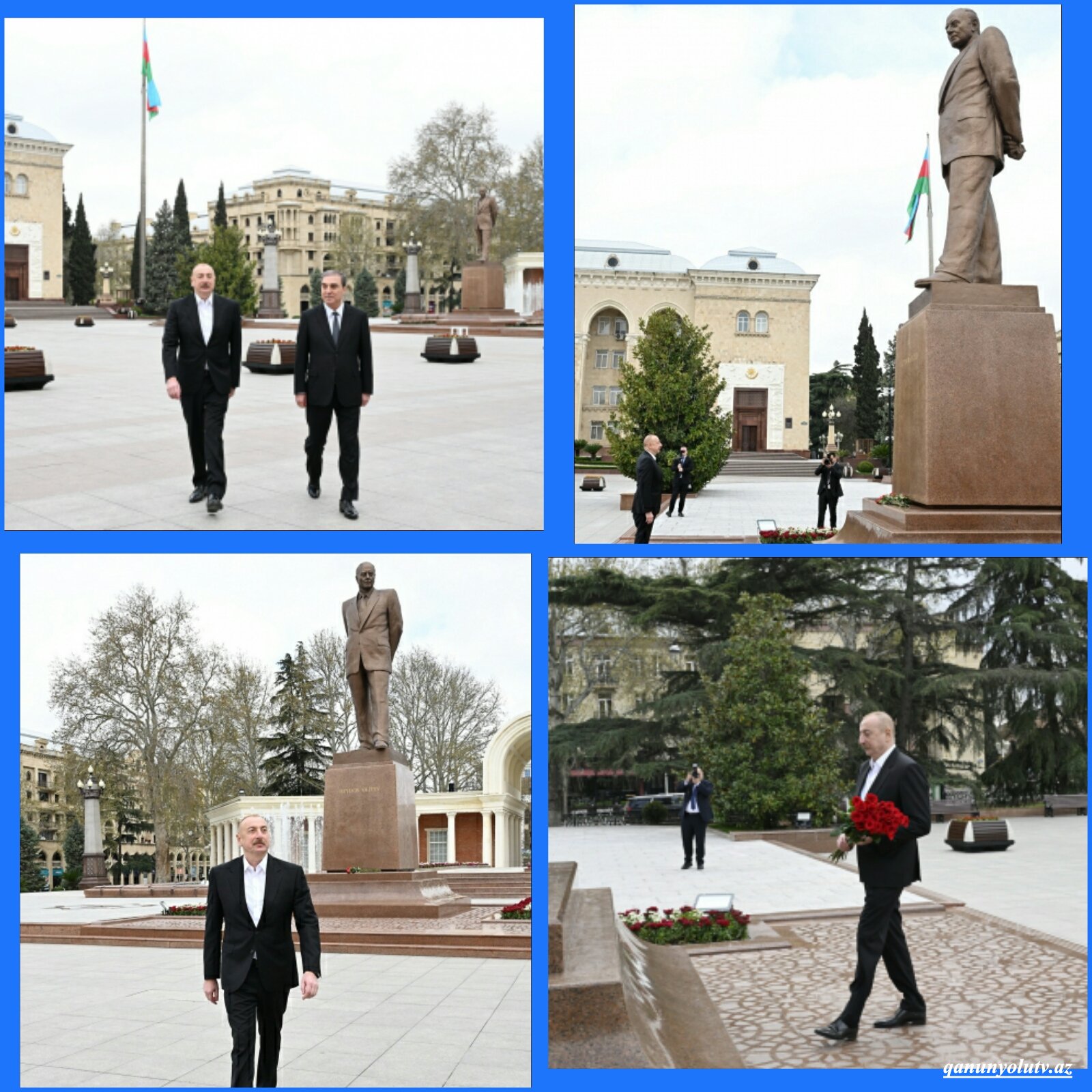 Prezident İlham Əliyev bu gün Gəncə şəhərində səfərdə olub.“Qanunyolutv.az” xəbər verir ki, dövlət başçısı ümummilli lider Heydər Əliyevin Gəncə şəhərinin mərkəzində ucaldılmış abidəsini ziyarət edib, önünə gül dəstəsi qoyub.