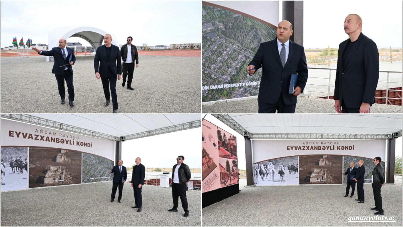Azərbaycan Prezidenti İlham Əliyev və oğlu Heydər Əliyev sentyabrın 19-da Ağdam rayonunun Eyvazxanbəyli kəndinin təməlqoyma mərasimində iştirak ediblər.“Qanunyolutv.az” xəbər verir ki, Ağdam, Füzuli və Xocavənd rayonlarında Azərbaycan Prezidentinin xüsusi nümayəndəsi Emin Hüseynov dövlət başçısına kənddə görüləcək işlər barədə məlumat verib.