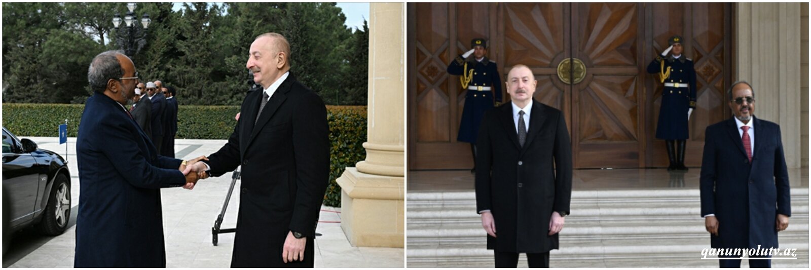 Azərbaycan Prezidenti İlham Əliyev Somali Prezidenti Hasan Şeyx Mahmudu qarşılayıb.