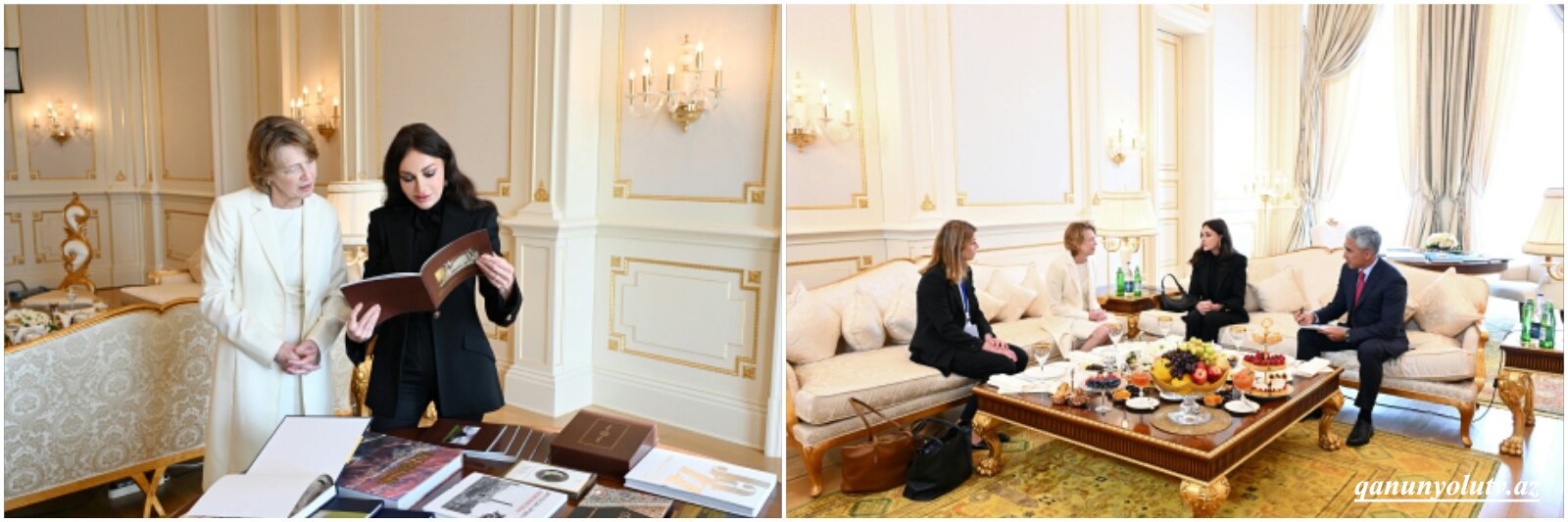 Xəbər verdiyimiz kimi, Almaniya Prezidenti Frank-Valter Ştaynmayer və xanımı Elke Büdenbender ölkəmizdə rəsmi səfərdədir.“Qanunyolutv.az” xəbər verir ki, bu gün Azərbaycanın birinci xanımı Mehriban Əliyevanın Almaniyanın birinci xanımı Elke Büdenbender ilə görüşü olub.