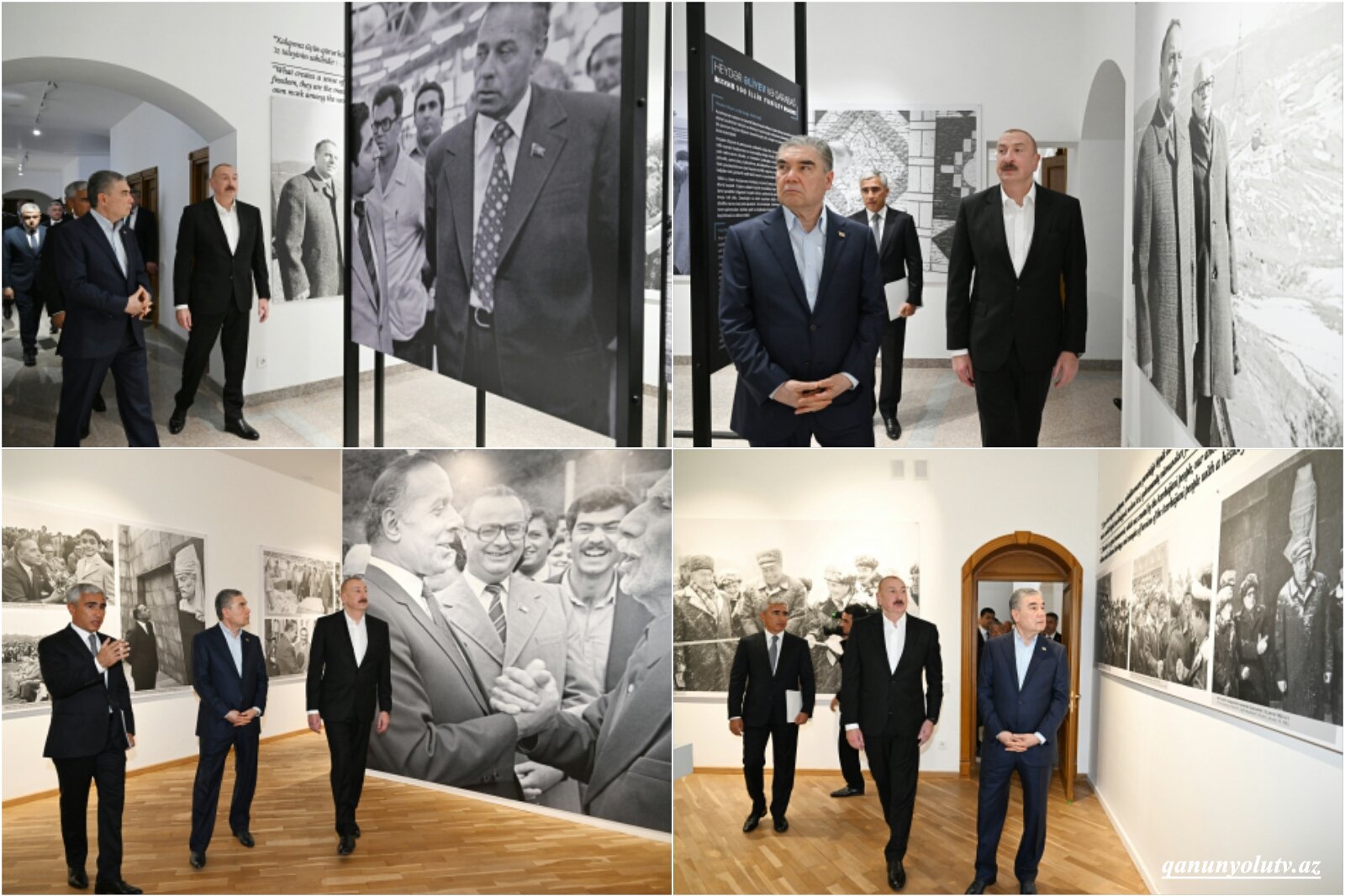 Azərbaycan Prezidenti İlham Əliyev və Türkmənistan Xalq Məsləhətinin sədri Qurbanqulu Berdiməhəmmədov bu gün Şuşada Heydər Əliyev Fondu tərəfindən bərpa edilən Yaradıcılıq Mərkəzində “Heydər Əliyev və Qarabağ” sərgisi ilə tanış olublar.“Qanunyolutv.az” xəbər verir ki, ölkə əhəmiyyətli memarlıq abidələri siyahısında olan bu binada vaxtilə Ağa Qəhrəman Mirsiyab oğlunun Karvansarası yerləşib.