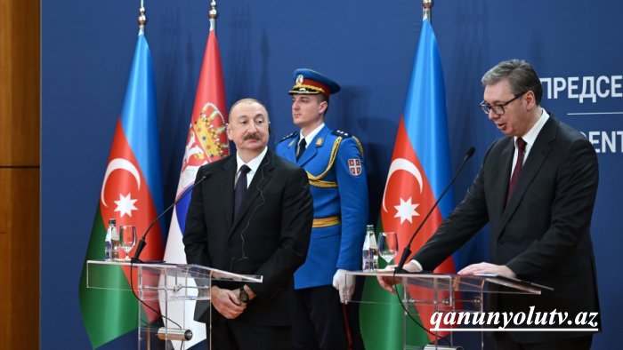 Digər məsələlərə gəldikdə, yenə də deyirəm, mənim dostum artıq bu barədə danışdı. Vaxtınızı çox almaq istəmirəm. Hesab edirəm ki, mənim rəsmi səfərimin nəticələri özünü çox gözlətməyəcək. Biz yaxın gələcəkdə yenə də bir-birimizlə görüşəcəyik. Mən Prezident Vuçiçi və Serbiya nümayəndə heyətinin üzvlərini Azərbaycana dəvət etmişəm. Əminəm ki, biz bu il bir neçə dəfə görüşəcəyik - həm Azərbaycanda, həm də ola bilər, mən yenə Serbiyaya gəlim. Çünki mən və əminəm ki, Azərbaycan nümayəndə heyəti burada özlərini evindəki kimi hiss edirlər. Mən dəfələrlə Serbiyada olmuşam və Prezident Vuçiçin rəhbərliyi ilə Serbiyada gedən inkişafı öz gözlərimlə görürəm. Buna görə bir daha serbiyalı dostlarımızı ürəkdən təbrik etmək istəyirəm və Prezident Vuçiçin şüarına da qoşuluram. Yaşasın Serbiya! Yaşasın Azərbaycan! Yaşasın Serbiya-Azərbaycan dostluğu!