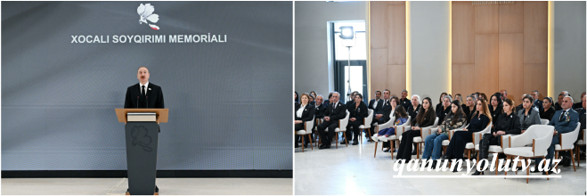 - İki il bundan əvvəl Xocalı Soyqırımı Memorial Kompleksinin təməli mənim iştirakımla qoyulmuşdur. Bu gün isə bu Memorial Kompleksin açılışına toplaşmışıq.