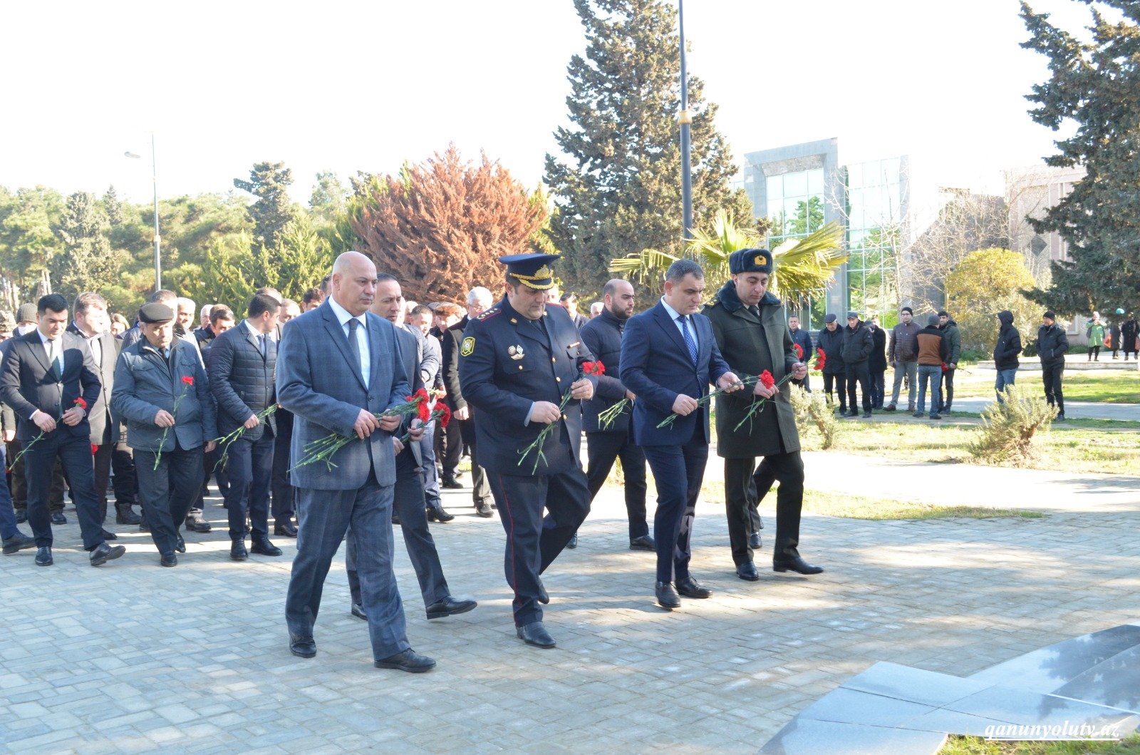Öncə ulu öndər Heydər Əliyevin, Azərbaycanın ərazi bütövlüyünün, müstəqilliyinin, konstitusiya quruluşunun müdafiəsi zamanı şəhid olan hərbi qulluqçuların və Xocalı soyqırımı şəhidlərinin ruhu bir dəqiqəlik sükutla yad olunub.