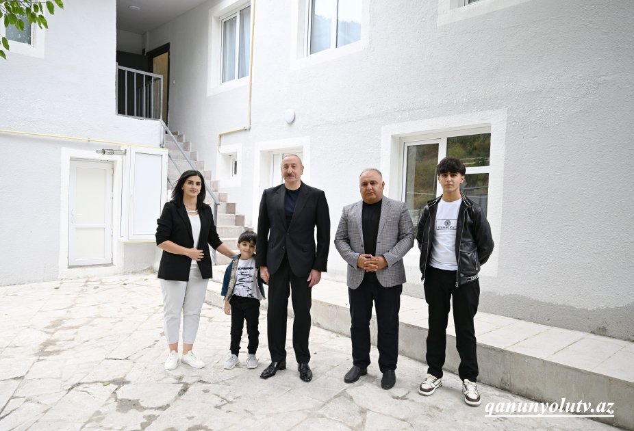 Dövlət başçısı kəndə köçmüş Zaur Rzayevin evində olub, ailə üzvləri ilə söhbət edib.