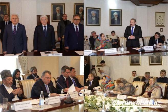 Tədbirdə həmçinin Dini Qurumlarla İş üzrə Dövlət Komitəsinin sədr müavini Sahib Nağıyev, Milli Məclisin Mədəniyyət Komissiyasının sədri Fazil Mustafa, deputatlar Fariz İsmayılzadə, Anar İsgəndərov, Cavanşir Paşazadə və Qüdrət Həsənquliyev iştirak ediblər. Söhbət zamanı qonaqlar ali din rəhbərinə təqdim olunub.
